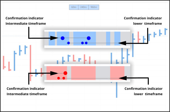 During every bar on the main chart, it analyses strength and weakness on 3 different timeframes including the current one